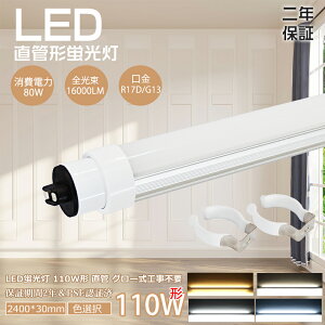 製 品 仕 様 製品名 LED蛍光灯 110W形(工事必要) 消費電力 80W 口金 R17D/G13兼用(回転式) 色温度 昼白色5000K 単品サイズ 30mm*2400mm 単品重量 約0.76kg...