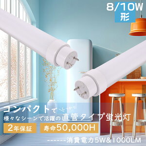 商品名 LED蛍光灯 8/10W形(工事不要タイプ) 消費電力 5W 全光束 1000LM 200LM/W 口金 G13(180°回転式) 入力電圧 AC85V〜265V 50/60HZ 給電方式 両側給電(片側給電の場合に...
