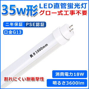 商品名 35W形LED蛍光灯(グロー式工事不要) 消費電力 18W 全光束 3600LM 入力電圧 AC100V~200V(両側給電) 口金 G13 (180°回転式) サイズ 1000*30*30mm...