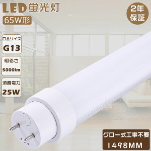 商品名 LED蛍光灯 65W形(グロー式工事不要) 消費電力 25W 定格光束 5000lm 色温度 昼白色5000K 口金 G13 照射角度 180° 点灯方式 両側給電方式 入力電圧 AC85V〜265V...