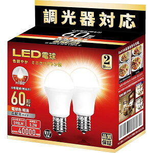 【送料無料】LED電球 E17口金 調光器対応 60W形相当 電球色相当 小形電球・ミニクリプトン形電球 広配光 密閉器具対応・断熱材器具対応 PSE認証 2個セット (電球色)ブランド色電球色モデル...