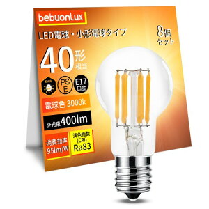 LED電球 E17口金 電球色 40W形相当 ミニクリプトン電球 全方向タイプ フィラメント電球 省エネ クリアタイプ 断熱材施工器具対応 密閉器具対応 調光器非対応 8個入り 『標準サイズ』E17口金...
