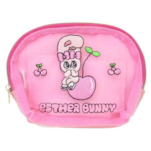 メッシュ感と刺繍がCuteなポーチお洒落/プレゼント/メイクポーチ/お出かけ/可愛い ポーチEstherKim氏がデザインしたPOPでキッチュなウサギのキャラクター[エスターバニー]グッズにまたまた可愛いnewアイテム登場こちらはコン...