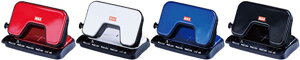 穿孔能力:約15枚 外寸:幅119×奥79×高74mm 重量:212g 穴数:2穴 穴奥行:12mm 穴径:6mm 穴間隔:80mm ゲージ対応サイズ:A5短辺〜A4長辺(4穴) 材質:ハンドル=鉄、