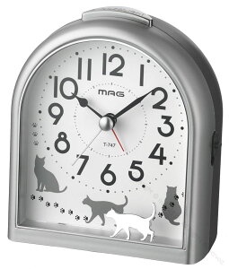 電子音アラーム、ライト、スヌーズ●単3形アルカリ乾電池x1●枠:ABS樹脂,風防:PC樹脂 MAG(マグ) 目覚まし時計 置き時計 アナログ ねこ ネコ 動物 かわいい 子供 静音 連続秒針 電子音 アラーム スヌーズ...