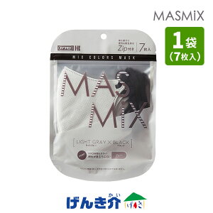 MASMiX カラー マスク ライトグレー×ブラック(1袋 7枚入) ■MASMiX 5つの特長 ツートンカラーで楽しむマスクスタイル Point1.こだわりの"角度"でマスクのズレ落ち軽減 Poin...