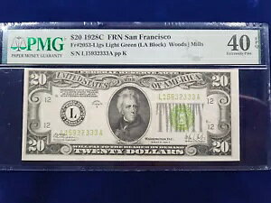 ?? 1928-C $20 FRN San Francisco Light Green Seal PMG EX-40 EPQ Fr#2053-L RARE商品についてセラーノート「PMG XF-40 EPQ」循環/非循環 循環額面 $...