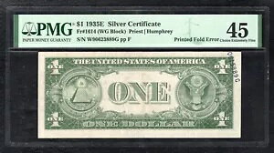FR. 1614 1935-E $1 SILVER CERTIFICATE “PRINTED FOLD ERROR” PMG EXTREMELY FINE-45商品について額面 $1循環/非循環 循環タイプエラーグレード45製造国/地...