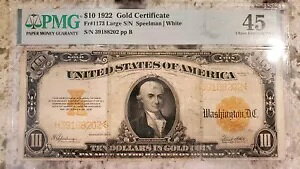 1922 $10 Gold Certificate #1173 Large Note Speelman/White PMG Extremely Fine 45商品について額面 $10循環/非循環 循環紙幣の種類1922 年グレード45...