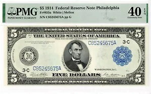 Fr. 855a $5 1914 Federal Reserve Note PMG Extremely Fine 40 EPQ. Philadelphia.商品について額面$5循環/非循環 非循環紙幣の種類1914年グレード40グレー...