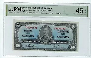 1937 $5 KGVI Bank of Canada; Gordon & Towers BC-23b PMG EXF 45 EPQ商品についてPMG認証国 カナダグレード45紙幣の種類1937 年循環/非循環 循環グレード指定 EP...