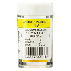 容量:50g 規格サイズ:#100ビニール袋 品番:113 耐光性:★★★★ 使用顔料:PY 35 有機/無機:無機顔料 吸油量:19g /100g 化学組成:硫化カドミウム 耐アルカリ:〇 ピグメント(顔料)は絵具をつくる上で最も基...