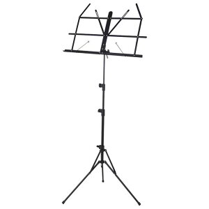 譜面台 MS-1AL/BK 軽くて丈夫なアルミ製の折り畳み式 カラー:BK(ブラック) 高さ:90〜147cm 重量:432g 折りたたみ時寸法:470mm 付属品:ソフトケース