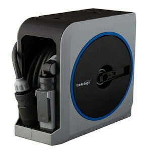 【在庫品】 [ホース ボックスタイプ 散水用 園芸用 ベランダ 軽量 小型 コンパクト takagi] タカギ製ホースリール史上「最小/最軽量」。ノズル側・蛇口側のホースをWリールで完全収納。究極のコンパクト設計の散水ホースリールです。