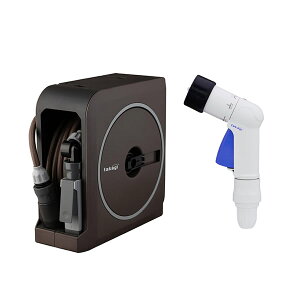 【特長】 ●ダブルリール搭載で、蛇口側のホースも巻き取り全部収納できます。 ●タカギ製ホースリール史上「最小/最軽量」です。(※社内比較) ●ラクロック蛇口搭載で工具不要で蛇口に取り付けできます。 ●収納に困らないコンパクト