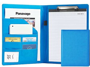 Panavage A4 クリップボード, PU レザー 二つ折り, ペンホルダー付き, ポケット・名刺入れ・メモ帳付き (ブルー) 【あふれるグレード感】PUのグレード感溢れるバインダーです。ご自身のビジネス効率アップに、またプレゼン...