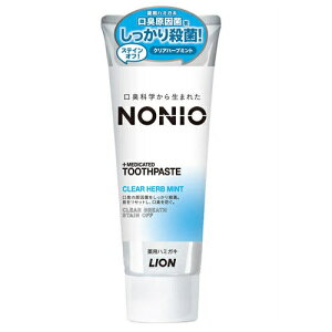 ■NONIOハミガキ クリアハーブミント130g【ライオン】 薬用 口臭科学から生まれた 口臭の原因菌をしっかり殺菌。息をリセットし、口臭を防ぐ。 天然ミント配合 すっきり爽やかなクリアハーブミント香味...