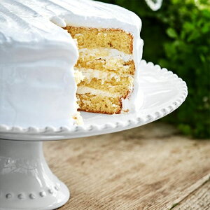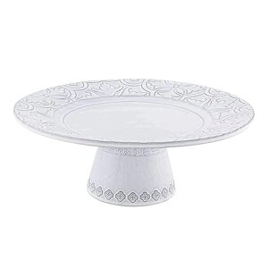 まわりにパールをあしらったようなデザインがロマンチックな脚付きのプレート。お家で焼き上げたケーキをのせてうんと楽しいティータイムを♪
