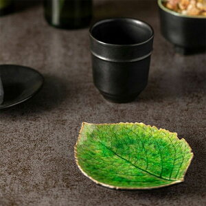 やわらかいハート型をした葉っぱの形のお皿。葉脈まで入って、本物の葉っぱのよう。外でのティータイムも楽しそう。
