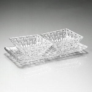 セット内容:ボウル2個、プレート1枚 サイズ:ボウル:12cm×12cm、プレート:28cm×14cm 素 材:クリスタルガラス 製 法:マシンメイド 生産国:ドイツ シリーズ:ボサノバ 幸福感あふれる軽やかなダンスから