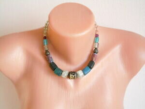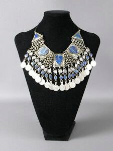 turchia boho girocollo collana argentata con lapislazzuli e monete pendenti
