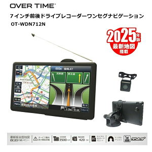 OVER TIME カーナビ 7インチ前後ドライブレコーダー搭載ワンセグナビゲーション OT-WDN712N ダイアモンドヘッド 前後ドラレコ機能付き 2025年度リリース地図搭載 ポータブルナビ ワンセグ録画機能