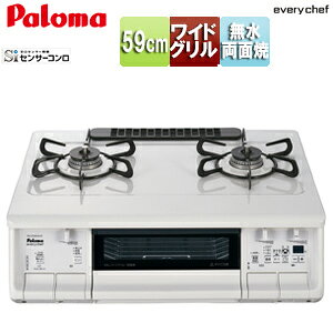 パロマ[Paloma]テーブルコンロ PA-380WHA-L/LPG プロパンガス 左強火力 everychef エブリシェフ 幅59cm 水なし両面焼き トッププレート素材:プラチナカラートップ