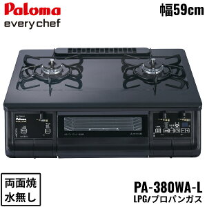 パロマ[Paloma]テーブルコンロ PA-380WA-L/LPG プロパンガス 左強火力 everychef エブリシェフ 幅59cm 水なし両面焼き トッププレート素材:プラチナカラートップ