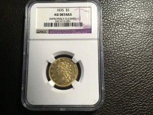 1835 5.00 Gold Coin NGC AU. Details Improperly Cleaned Half Price Of A Nice Au商品についてNGC認証1835年額面$5構成ゴールド製造国/地域 米国1933...