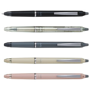 色:全5色:B(ブラック)、BN(ブラウン)、DG(ダークグリーン)、BO(ボルドー)、CP(コーラルピンク) 種類・インキ:種類:多色ゲルインキボールペン、インキ:フリクションインキ 材質:鞘:PC樹脂・塗装・ロゴ印刷 ペン先...