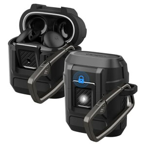 Spigen Pixel Buds 2a ケース ロック機能 ワイヤレス充電 紛失防止 カラビナ付き 一体型 耐衝撃 カバー 衝撃吸収 充電ライト ロック・フィット ACS09481 (マット・ブラック)ブランド:...
