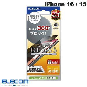 エレコム iPhone 16 ガラスフィルム 強化ガラス 硬度10H のぞき見防止 180° プライバシー保護 飛散防止設計 指紋がつかない 気泡が入らない (iPhone 15対応) PM-A24AFLGGPF2 ガラス特有のなめら...