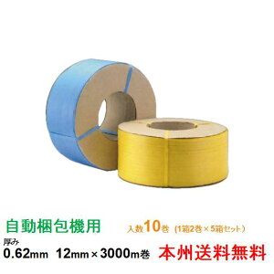 幅:12mm ●巻数:3000m ●破断伸度:20% ●引張強度(N):1200 ●内容量:10巻(1箱2巻入×5箱セット) ●カラー:透明・黄・青・白・緑 ●自動梱包機用 【特長】 ・耐水性、耐湿性に優れた強靭な梱...
