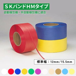 【【特徴】 ◆自動梱包機、半自動梱包機に適合した梱包用PPバンドです。 ◆鮮明な色彩により、商品仕分けにも適しています。 【規格】 ●カラー 幅12mm×3000m:白 赤 青 黄 緑 紫 透明 幅15.5mm×2500m:...