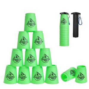 スピードカップス 競技用 飛重ねカップ プラスチック製 厚め 12個セット 手提げ棒付き 収納袋付き (グリーン) 【より優れた材料】:環境にやさしいPP原料で、子供でも安全で長時間練習できます。