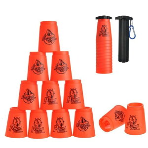 スピードカップス 競技用 飛重ねカップ プラスチック製 厚め 12個セット 手提げ棒付き 収納袋付き (レッド) 【より優れた材料】:環境にやさしいPP原料で、子供でも安全で長時間練習できます。つ
