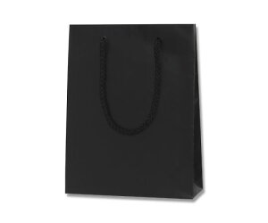 縦長サイズのツヤあり手提げ紙袋(黒)。表面にPP貼りを施し高級感があり、ギフト用に最適です。・ツヤ有りで高級感・ギフト用に最適・持ち帰り用の袋に