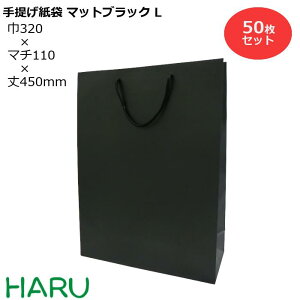 ■仕様詳細 品名 紙手提げ袋 マットブラック L 素材 コート紙 印刷 黒1色印刷 表面加工 マットPP サイズ 幅320×マチ110×丈450mm ハンドル PPスピンドル紐(黒) 入数 50枚ケース...
