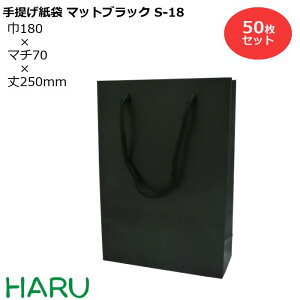 ■仕様詳細 品名 紙手提げ袋 マットブラック S-18 素材 コート紙 印刷 黒1色印刷 表面加工 マットPP サイズ 幅180×マチ70×丈250mm ハンドル PPスピンドル紐(黒) 入数 50枚ケース...