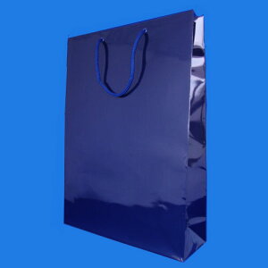 縦長サイズのツヤあり手提げ紙袋(紺)。表面にPP貼りを施し高級感があり、ギフト用に最適です。・ツヤ有りで高級感・ギフト用に最適・持ち帰り用の袋に