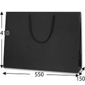 縦長サイズのツヤあり手提げ紙袋(黒)。表面にPP貼りを施し高級感があり、ギフト用に最適です。・ツヤ有りで高級感・ギフト用に最適・持ち帰り用の袋に