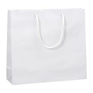ツヤありPP加工!白色で持ち手紐付きの高級ギフトバッグ。光沢があり、上品な仕様です。ギフトやプレゼントの包装にいかがでしょうか。・光沢があり、上品な仕様・シーンを問わず使いやすい白色・ギフトやプレゼントの包装に