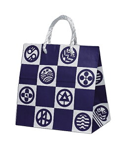 紙袋 手提げ袋のミニサイズが100枚入りでお買い得! サイズは幅260×マチ150×高さ260mmです。 紺の市松模様に紋入りの粋な和風柄! 店舗での包装用資材、お茶や和菓子、和雑貨ギフトのラッピング等...