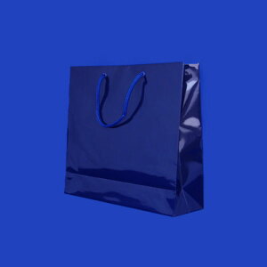 ツヤありPP加工!紺色で持ち手紐付きの高級ギフトバッグ。光沢があり、上品な仕様です。ギフト包装やお持ち帰りにいかがでしょうか。・光沢があり、上品な仕様・落ち着いた印象のシコン(紫紺)色・ギフト包装やお持ち帰りに