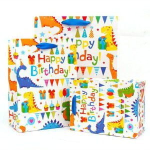 パッケージ内容:L、M、S各1枚入。厚手のしっかりとした3枚セットのギフトバッグ かわいい恐竜デザインの手提げ袋、可愛くて、環境に優しく、安全に使用できる高品質の紙で作...