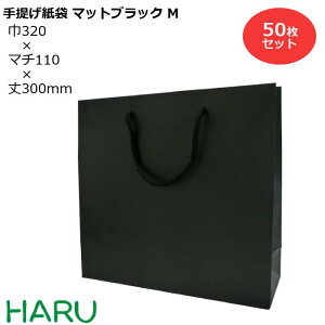 ■仕様詳細 品名 紙手提げ袋 マットブラック M 素材 コート紙 印刷 黒1色印刷 表面加工 マットPP サイズ 幅320×マチ110×丈300mm ハンドル PPスピンドル紐(黒) 入数 50枚ケース...