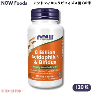 NOW Foods(ナウフーズ) アシドフィルス&ビフィズス菌 80億 内容量:120粒(植物性カプセル) 数量:1個 型番:2932 ・2つの優れた腸内常在菌成分がバランスよくブレンドされています。...