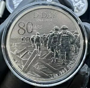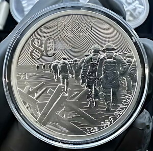 2024 Alderney 1 Pound Silver D-Day 80th Anniversary Coin 1 oz BU Capsule