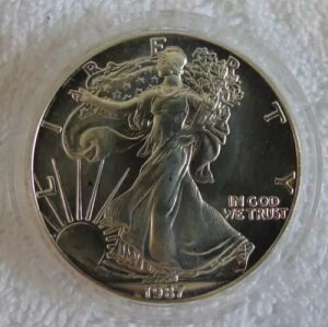 1987 American Silver Eagle 1 Troy Oz .999 Fine Silver Mint Capsule SAE $1 Dollar。