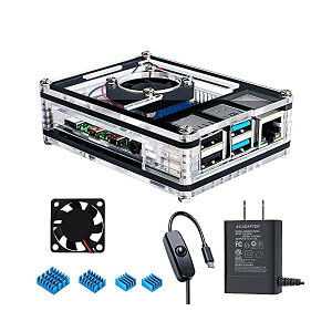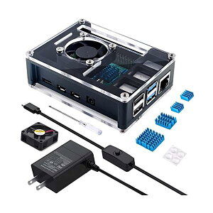 【送料無料】最新 Raspberry Pi 4 ケース ラスベリー パイ4 5.1V 3A USB-C 電源アダプター+冷却ファン+ヒートシンクラズパイ 4 Model B対応(Raspberry Pi 4 本体...